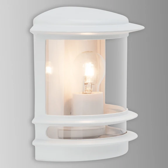 Външна стенна лампа Hollywood осигурява ярко красива светлина Тази красива външна стенна лампа отговаря на името си: осветителното тяло, изработено от боядисан лят под налягане алуминий, има почти бляскав дизайн с корпус, който предпазва пластмасовото тяло на осветителното тяло, в което се вижда източникът на светлина. Крушката излъчва ярка светлина, като гарантира, че входната зона на къщата, например, се къпе в атмосферно осветление - оборудвано със степен на защита IP44