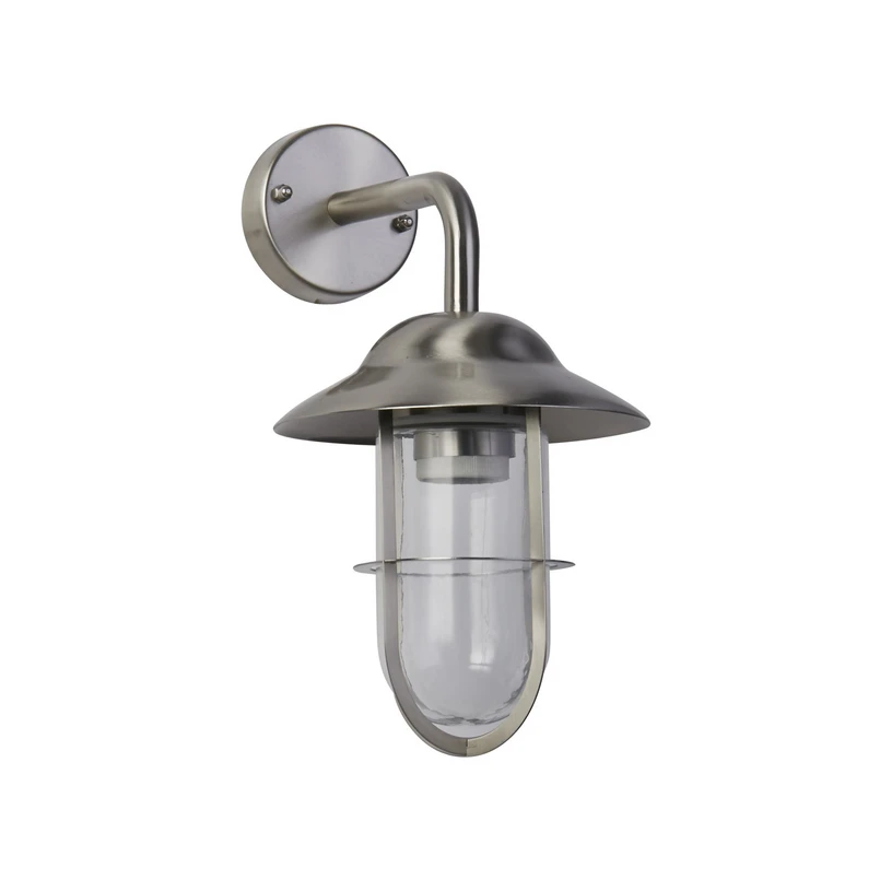 Външно стенно осветление Toronto, IP44, сребристо, стомана, стъкло, E27