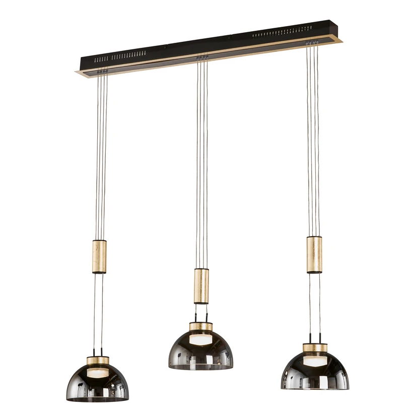 Висяща лампа Avignon 3-крила, пушено стъкло/черно/златно