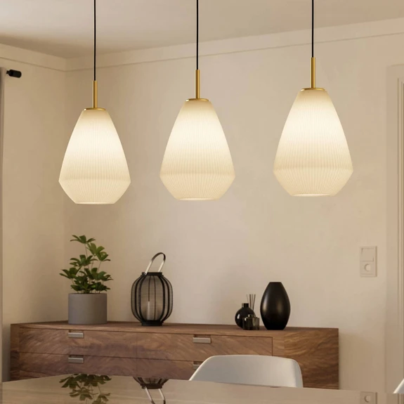 Висяща лампа Caprarola, дължина 90 cm, пясъчен цвят, 3 светлини, стъкло