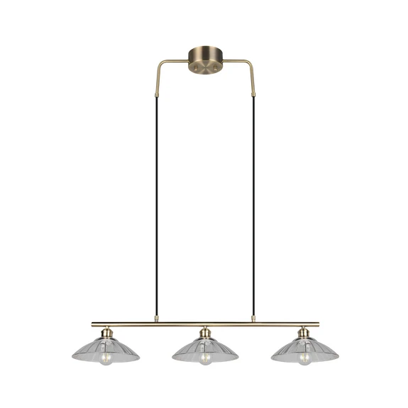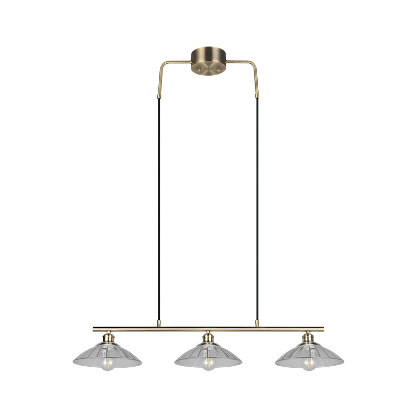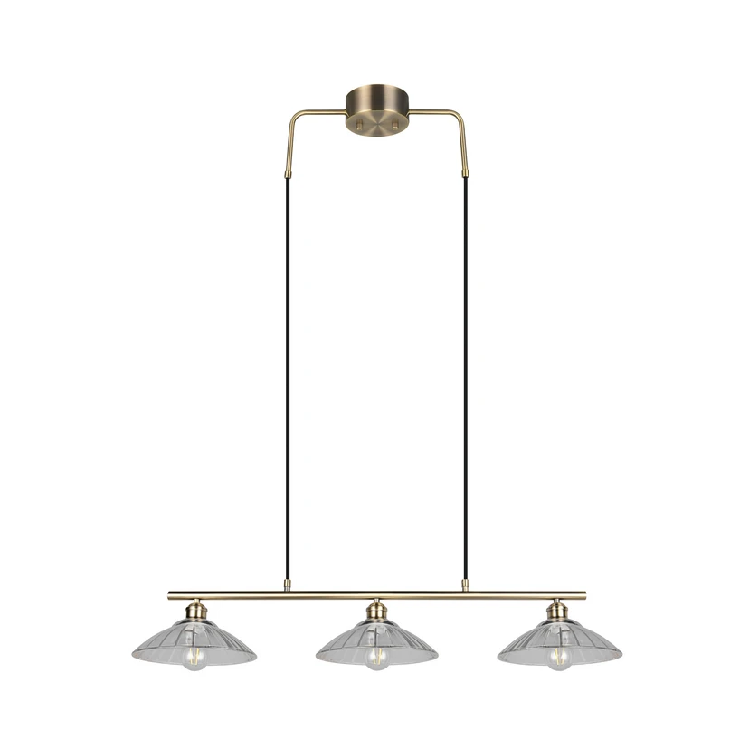 Висяща лампа Eluna, прозрачна/старинна месинг, 100 см стъкло/метал 3-крилна.