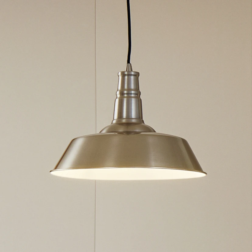 Висяща лампа Laylan с впечатляващ дизайн в цвят никел Висящата лампа Laylan съчетава модерен дизайн с индустриален чар и създава атмосфера, която е идеална както за трапезарията, така и за всекидневната. Никеловото покритие и белият интериор добавят поразителен детайл към всяка стая, а диаметърът от 36 см гарантира равномерно разпределение на светлината. Въпреки че в комплекта на този модел не е включен димер, яркостта може лесно да се регулира с помощта на външен димер (не е включен в комплекта), за да се създаде желаното настроение.