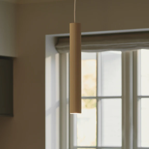 Висяща лампа Vico с дълъг алуминиев абажур Серията лампи Vico е въплъщение на скандинавската елегантност със своя минималистичен, обтекаем дизайн. Набраздената повърхност на дългия цилиндричен абажур създава фин, но интересен ефект. Стройната висяща лампа Vico излъчва светлина надолу и може да се използва много добре с няколко лампи в редица, в група или като единична светлина за подчертаване на определени елементи в помещението.