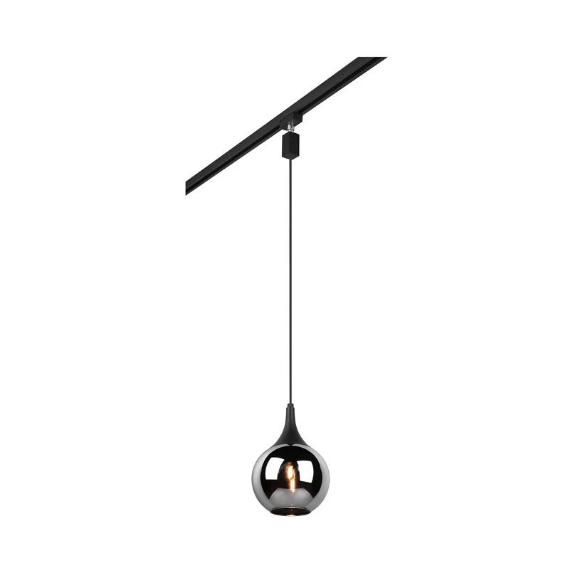 Висящо осветление Lumina за двуфазната релсова система DUOline Висящото осветление Lumina е един от многото компоненти на двуфазната релсова система DUOline. Окачването е изработено от черен метал, а абажурът е от стъкло. Цветовата гама от черно и хром придава на висящата лампа модерен вид, който ѝ позволява да се вписва в различни среди. Lumina може да се използва в частна, обществена или търговска среда и изглежда чудесно например над маса за хранене. Висящото осветително тяло се откроява като единичен компонент или в редица с няколко лампи