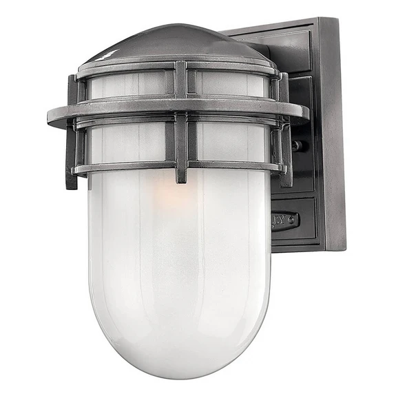 Външна стенна лампа Reef с морски привкус Стенната лампа Reef за външна употреба се съчетава много добре с морския стил на имота, тъй като има разпознаваеми морски елементи: здравината на металните части от лят алуминий, като например стойката за стена и държача за стъкло, както и формата на стъкления абажур. Бялото стъкло е гравирано и осигурява цялостно околно осветление, например във входната част на къщата. По този начин външната стенна лампа Reef допринася за по-голям комфорт и безопасност.