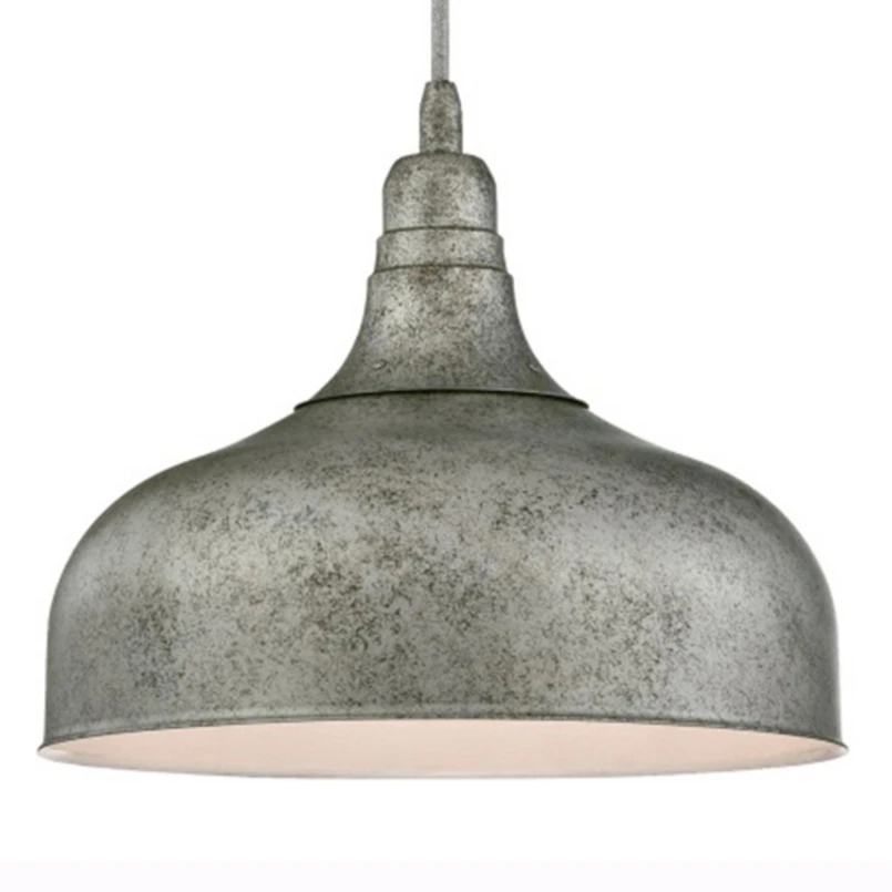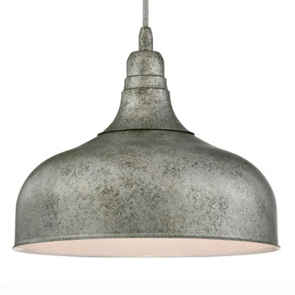 Висяща лампа 6330140 с метален абажур с вид на антична стомана Висящата лампа в античен стил има куполообразен абажур, който е много широк в долната си част и се стеснява към върха. Повърхността на абажура е покрита с покритие от антична стомана, което придава на лампата старинен и рустикален вид. Фините зърна и неравностите го правят уникален и вълнуващ. Въпреки финия винтидж привкус висящата лампа е съвременна и модерна. Вътрешността ѝ е завършена в светъл цвят, който компенсира хладината на външната обвивка и създава много уютна атмосфера.