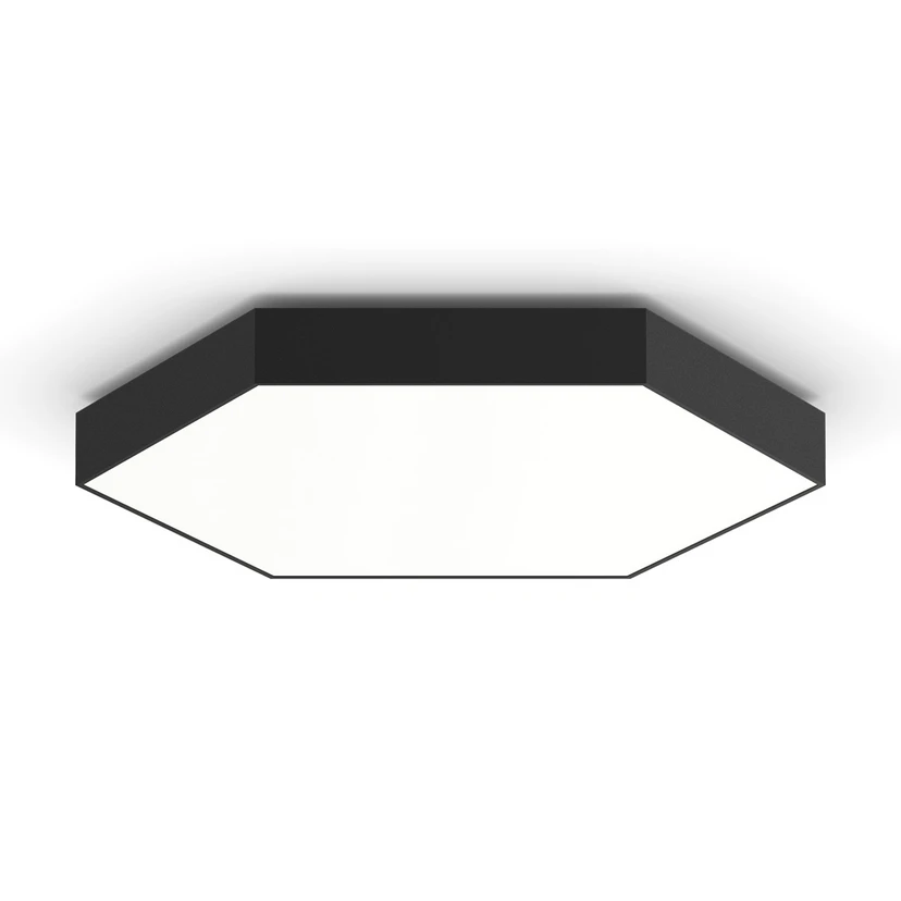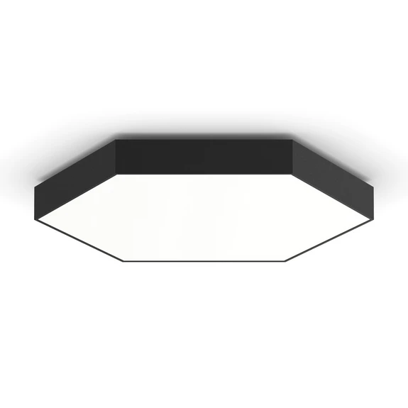 Шестоъгълна LED лампа за таван HEX-O за единичен или групов монтаж LED лампата за таван HEX-O се състои от шестоъгълно, безпроблемно заварено тяло на осветителя, изработено от екструдиран алуминиев профил с прахово покритие. Вътре са разположени мощни и енергийно ефективни светодиоди, които могат да се димират с помощта на DALI-2/CLO. Сатинираният капак от PMMA осигурява абсолютно хомогенно осветление. HEX-O може да се монтира като единично осветително тяло или в групи. Осветителното тяло може да се комбинира с всички таванни осветителни тела HEX-O и TRIG-O. Могат да се добавят и подходящи акустични елементи, като например подходящи звукопоглъщащи абсорбери, които да спомогнат за оформянето на акустиката на помещението - еднаква плътност на осветителя за всички повърхностни осветители - цвят на светлината 3 000 К - първоначално биниране ≤ 3 MacAdam - вкл. конвертор DALI2 с функция CLO - LED светлинната вложка, вкл. радиатор, може да се подменя от специализиран персонал