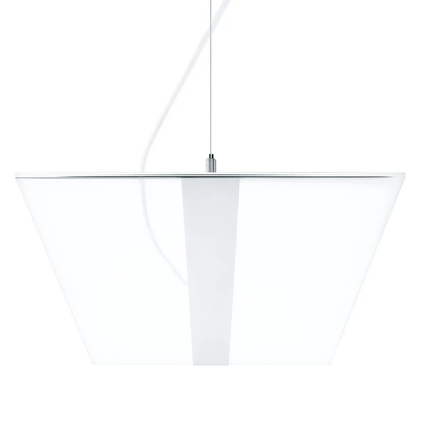 Абажур на висящото LED осветително тяло Vaero за управление чрез DALI и приложения Това висящо LED осветително тяло е идеално за всеки, който иска да управлява осветлението в офиса с помощта на смартфон или таблет. Благодарение на функцията BasicDIM Vaero може да се управлява чрез безплатно приложение през Bluetooth. Алтернативно се предлага и управление чрез външни DALI димери. Производителят Zumtobel е проектирал Vaero в плоска, правоъгълна форма. В центъра е разположена надлъжна ивица от екструдиран алуминиев профил с бяло прахово покритие. В него са разположени светодиодите, преобразувателят на светодиоди и приспособлението за кабелна скоба. Отстрани изпъкват участъци от светловодна плоча, изработена от специална пластмаса, която изглежда прозрачна, когато е изключена. Структурата на материала осигурява равномерно разпределение на светлината по време на работа, като осигурява околно осветление по тавана и директно осветление на задачите надолу. Важно: За пускането в експлоатация на осветителното тяло е необходим отделно предлаганият комплект за монтаж и захранване, който може да се добави чрез аксесоарите. Функция BasicDIM: управление чрез безплатното приложение 4remote BT за Android и iOS - Функция Mesh: предаване на команди към устройства извън прекия обхват на Bluetooth (макс. разстояние помежду им 4 м, макс. 127 възела в мрежа) - Функция Bluetooth: предаване на команди към устройства извън прекия обхват на Bluetooth (макс. разстояние помежду им 4 м, макс. 127 възела в мрежа) 127 възела в мрежа) - Bluetooth: обхват макс. 15 м; радиочестота 2,4 - 2,483 GHz; мощност на радиопредаване +4 dBm - DALI димируемост - Светлинно излъчване: 53 % надолу, 47 % нагоре - Контрол на заслепяването: UGR <19 - Толеранс на местоположението на цвета (първоначален MacAdam): 3 - Категория на поддръжка: F - Непреки осветителни тела - Тегло: 5,4 кг