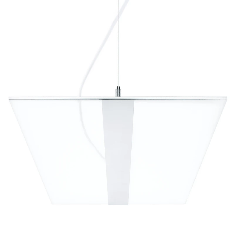 Абажур на висящото LED осветително тяло Vaero за управление чрез DALI и приложения Това висящо LED осветително тяло е идеално за всеки, който иска да управлява осветлението в офиса с помощта на смартфон или таблет. Благодарение на функцията BasicDIM Vaero може да се управлява чрез безплатно приложение през Bluetooth. Алтернативно се предлага и управление чрез външни DALI димери. Производителят Zumtobel е проектирал Vaero в плоска, правоъгълна форма. В центъра е разположена надлъжна ивица от екструдиран алуминиев профил с бяло прахово покритие. В него са разположени светодиодите, преобразувателят на светодиоди и приспособлението за кабелна скоба. Отстрани изпъкват участъци от светловодна плоча, изработена от специална пластмаса, която изглежда прозрачна, когато е изключена. Структурата на материала осигурява равномерно разпределение на светлината по време на работа, като осигурява околно осветление по тавана и директно осветление на задачите надолу. Важно: За пускането в експлоатация на осветителното тяло е необходим отделно предлаганият комплект за монтаж и захранване, който може да се добави чрез аксесоарите. Функция BasicDIM: управление чрез безплатното приложение 4remote BT за Android и iOS - Функция Mesh: предаване на команди към устройства извън прекия обхват на Bluetooth (макс. разстояние помежду им 4 м, макс. 127 възела в мрежа) - Функция Bluetooth: предаване на команди към устройства извън прекия обхват на Bluetooth (макс. разстояние помежду им 4 м, макс. 127 възела в мрежа) 127 възела в мрежа) - Bluetooth: обхват макс. 15 м; радиочестота 2,4 - 2,483 GHz; мощност на радиопредаване +4 dBm - DALI димируемост - Светлинно излъчване: 53 % надолу, 47 % нагоре - Контрол на заслепяването: UGR <19 - Толеранс на местоположението на цвета (първоначален MacAdam): 3 - Категория на поддръжка: F - Непреки осветителни тела - Тегло: 5,4 кг